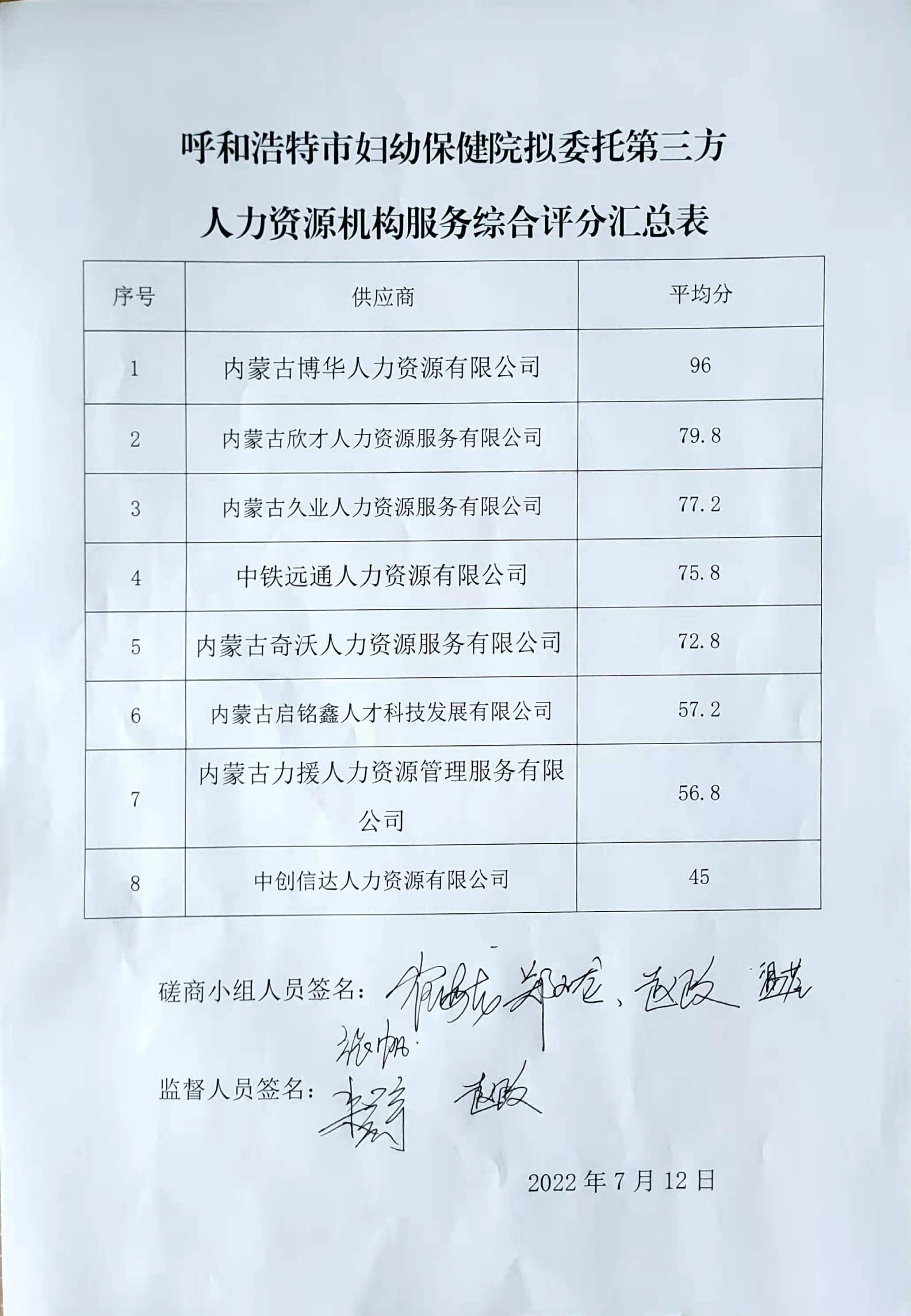 呼和浩特市婦幼保健院擬委托第三方人力資源機構服務比選結果公告