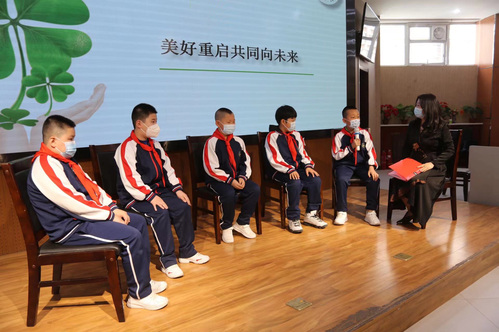 講座中,陳老師以“美好重啟共同向未來”為題,首先以一封書信的方式向孩子們表達著想念,逐漸打開復課后學生們的心靈,在孩子們沉浸的傾聽中,講座進入第二個環(huán)節(jié)即圍坐一起對話,該環(huán)節(jié)在老師的引導下,學生們踴躍上臺分別就自己疫情期間在家上網(wǎng)課表達著各自不同的想法,他們表示在家期間特別想念朋友們、感覺上網(wǎng)課有些坐不住、感覺到一個人在家有些孤獨、幸好家里有我的妹妹等等,陳老師針對孩子們的表達訴求給出要學會求助的方法。最后在老師的號召下,全體同學行少先隊禮宣誓著:在美好的重啟中共同向希望,向未來,向美好的明天。
