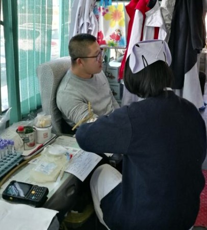 獻(xiàn)血過程中,經(jīng)常參加獻(xiàn)血活動的“老前輩”們安慰第一次獻(xiàn)血的新人們,大家互相鼓勵,緩解了緊張的情緒。血液中心工作人員也體貼的提醒大家注意休息,合理飲食。溫暖的一幕幕在小小的獻(xiàn)血車中不斷上演,使這個冬日溫暖如春。更使我們感動的是前來就診的患者家屬也陸續(xù)加入到獻(xiàn)血的隊(duì)伍中來。