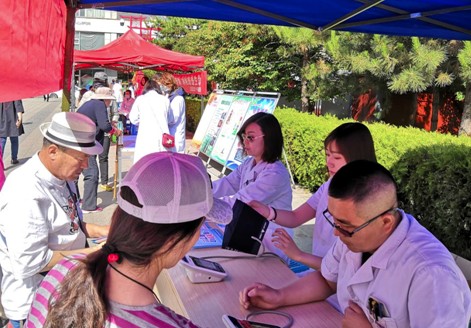 活動(dòng)現(xiàn)場,呼市婦幼保健院志愿者一邊為患者進(jìn)行簡單的健康檢查,一邊耐心的講解著吸煙帶來的危害,并對群眾介紹了煙草帶來的危害以及戒煙的好處,尤其針對吸食二手煙、三手煙對少年兒童造成的嚴(yán)重影響進(jìn)行了詳細(xì)講解;倡導(dǎo)大家愛護(hù)環(huán)境,做文明居民,不在公共場所吸煙;經(jīng)常鍛煉身體,積極參與健身活動(dòng),努力創(chuàng)建無煙環(huán)境,構(gòu)建和諧社會。本次活動(dòng)呼市婦幼保健院還通過懸掛橫幅(兩條)、放置控?zé)熣拱澹?塊)、發(fā)放宣傳手冊的方式向來往的居民宣傳講解戒煙常識,以及吸煙的具體危害?;顒?dòng)共為居民測血壓60余人,發(fā)放宣傳手冊200余份。